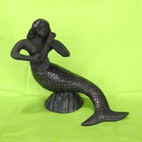 These three sirens musicians were realized by Adelina Pedro Martinez, from a noble family, talking about 'barro negro'. Her mother, an artisan and her father, a sculptor, handed down their arts to their children. Her brother, Carlomagno, is one of the most important Maestros of Mexican Popular Art, director of the Oaxaca Popular Art Museum. The 'barro negro', black terracotta, is a totally natural terracotta, with no paint or glaze. Choose the instrument in the "Variants" down here; the pictures are in the same order.
