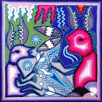 Questo bellissimo quadro è un esempio di Arte Shamanica Messicana, per l'esattezza Arte Huichol.