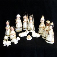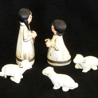 This crib consists of 14 characters: Jesus, Joseph, Maria, the Three Kings, one Angel, two shepherds, ox and donkey, three sheeps. It is made of terrecotta, decorated with acrilic colours. The measures refer to the tallest character. It is available in various colours; choose it in the "Variants" down here; the pictures are in the same order.