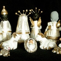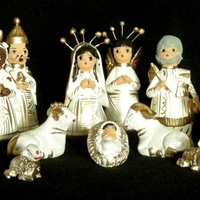 This crib consists of 14 characters: Jesus, Joseph, Maria, the Three Kings, one Angel, two shepherds, ox and donkey, three sheeps. It is made of terrecotta, decorated with acrilic colours. The measures refer to the tallest character. It is available in various colours; choose it in the "Variants" down here; the pictures are in the same order.