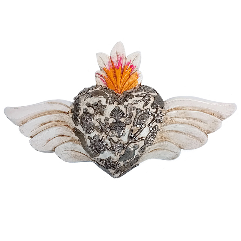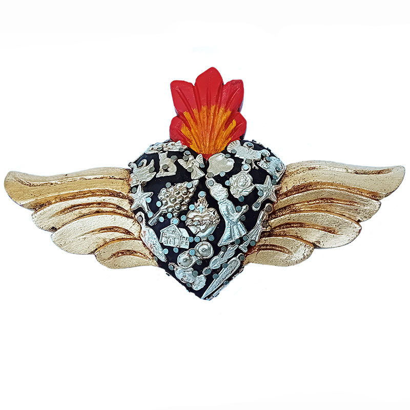 - Catalogo » Arte Sacra Cristiana - Cuori Sacri » Cuori Sacri » Cuori di legno » Cuore alato con Milagros, pic - ml