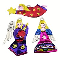 Queste figure sono fatte di latta, decorate a freddo e sono un classico per l'albero di Natale. Le misure sono quelle dell'angelo campana.