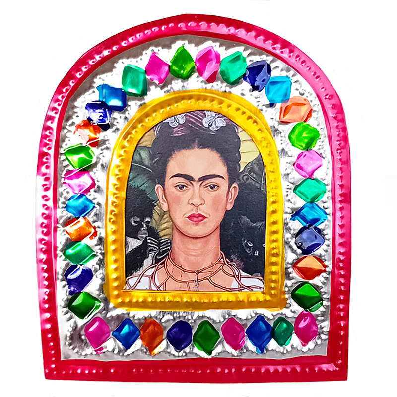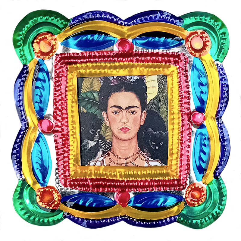Queste cornici sono fatte in latta, decorate a mano a freddo e ospitano all'interno delle immagini di autoritratti di Frida Khalo. Sono pronte per essere appese.