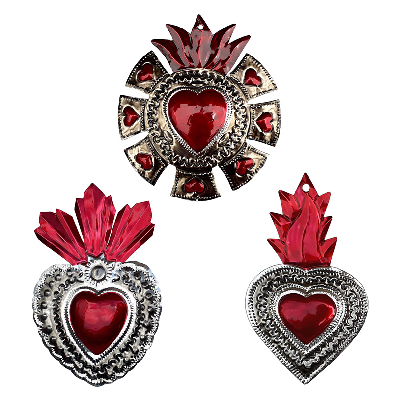 - Catalogo » Arte Sacra Cristiana - Cuori Sacri » Cuori Sacri » Cuori di metallo » Set di 3 Cuori pic. E - ox