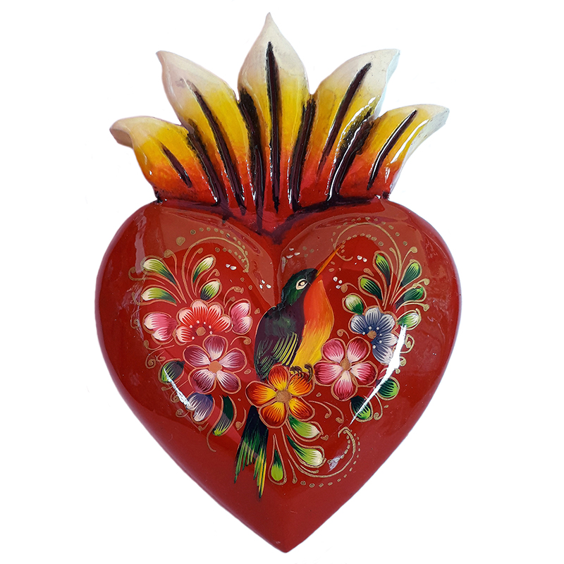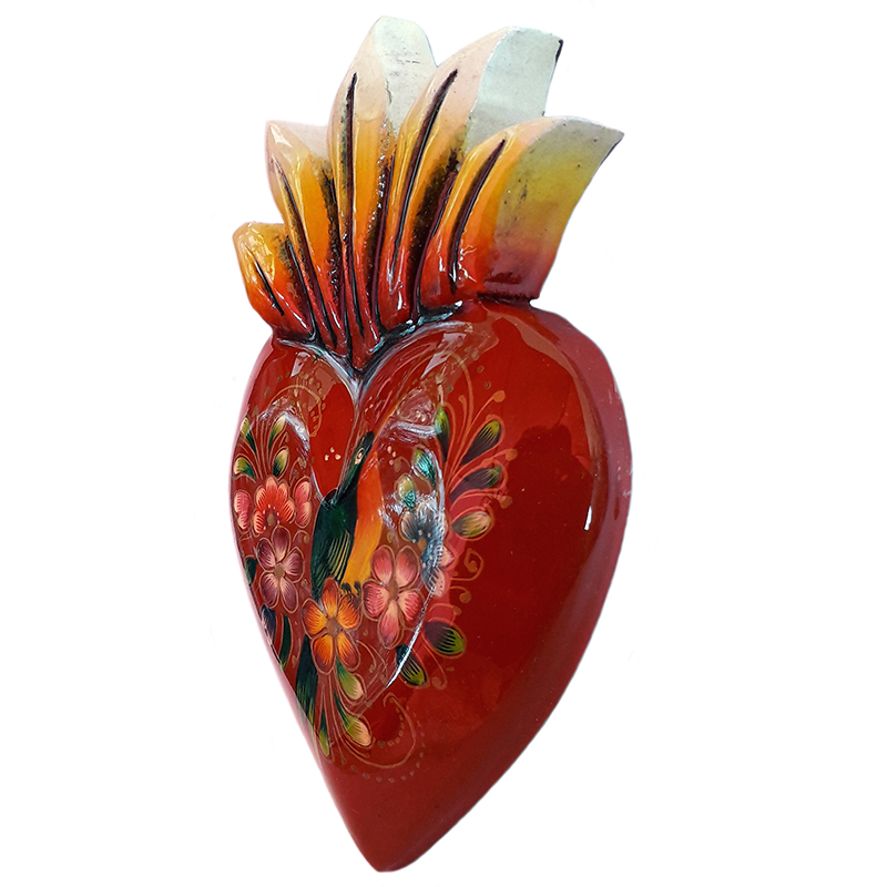 Fantastici cuori provenienti dallo Stato di Michoacan, Messico. Sono intagliati, dipinti e laccati a mano, con grande maestria. Pezzo unico.