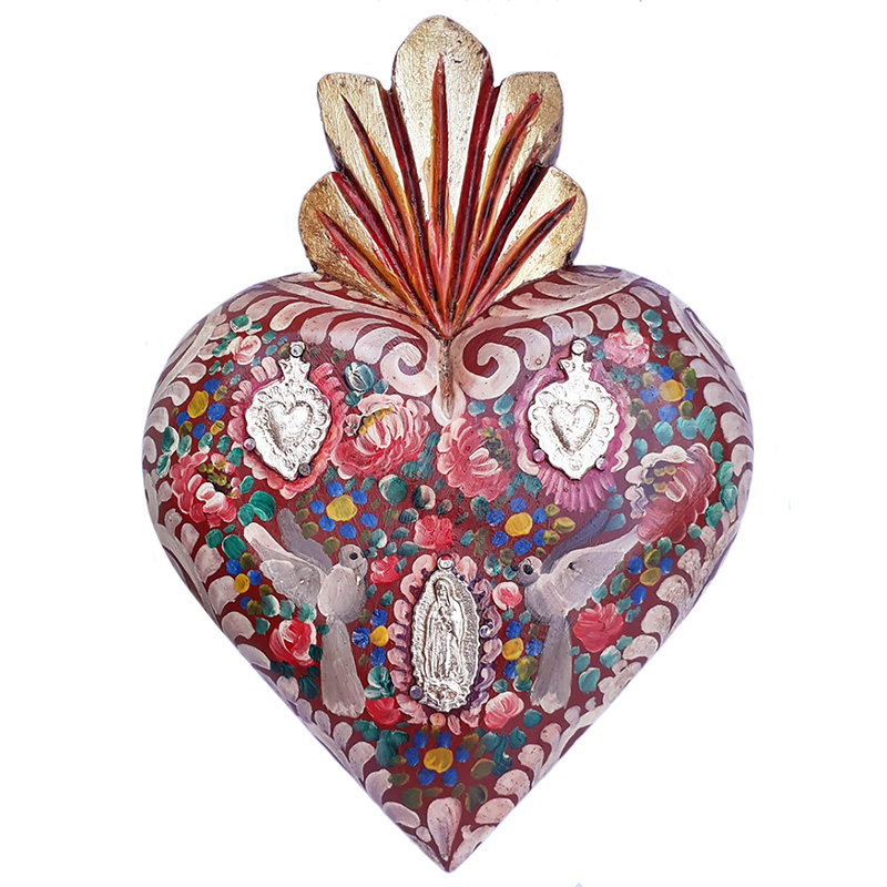 - Catalogo » Arte Sacra Cristiana - Cuori Sacri » Cuori Sacri » Cuori di legno » Sacro Cuore con Milagros, decorato a mano - ml