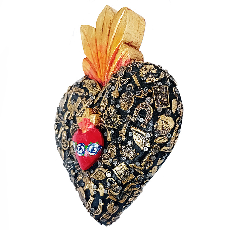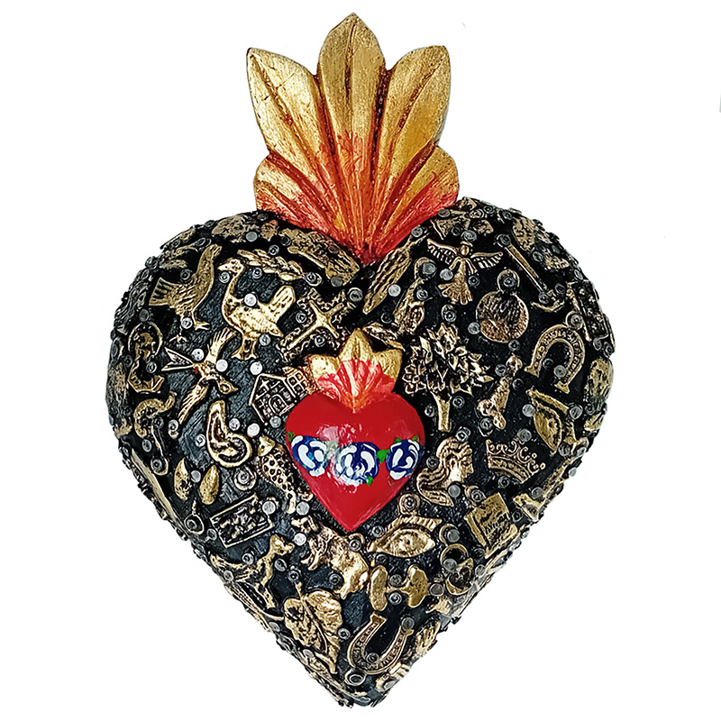 - Catalogo » Arte Sacra Cristiana - Cuori Sacri » Cuori Sacri » Cuori di legno » Cuore con Milagros e Cuoricino, med - ml