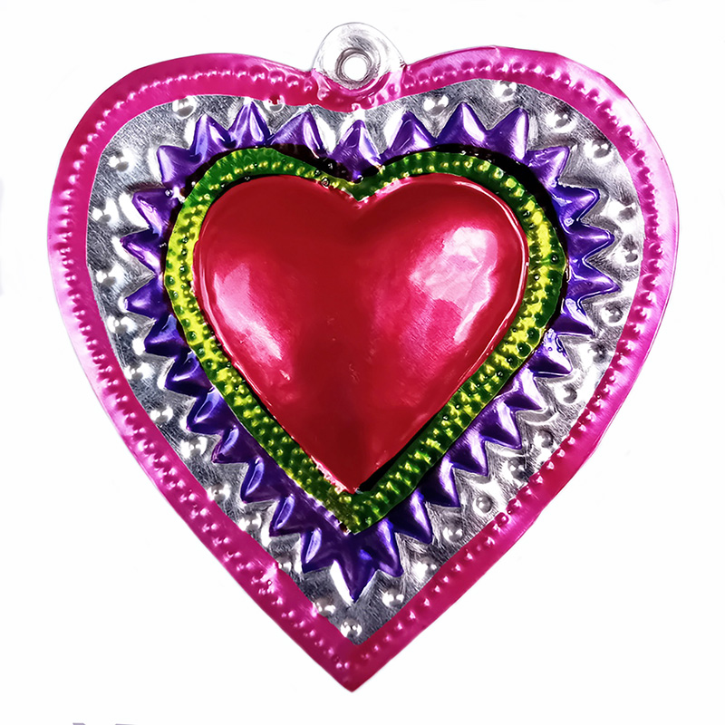 Cuore in latta, tagliato e decorato a mano. Disponibile in due versioni da scegliere nelle "Varianti" qui in basso.